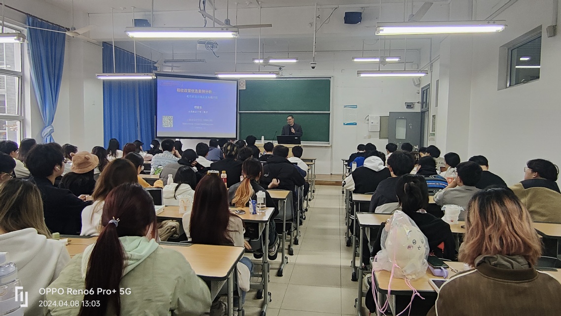 4月8日,上海市会计学会科技工作委员会副会长、秘书长穆家乐教授应邀来我校为税收学专业二三年级的学生做讲座。