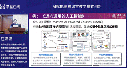 本次培训涵盖了多个重点领域,包括AI在教学设计、学生评估和教学互动中的应用。首日的培训以“AI技术与教学创新”为主题,通过一系列来自清华大学不同学科领域的专家讲座深入探讨了AI技术如何帮助教师在课堂上提供个性化学习体验。此外,实践环节中,教师们亲自体验了如何利用AI工具,来分析学生反馈并优化教学内容。培训重点关注了AI在在线和混合教学模式中的角色,讨论了如何利用AI技术来增强远程教学的互动性和参与度。