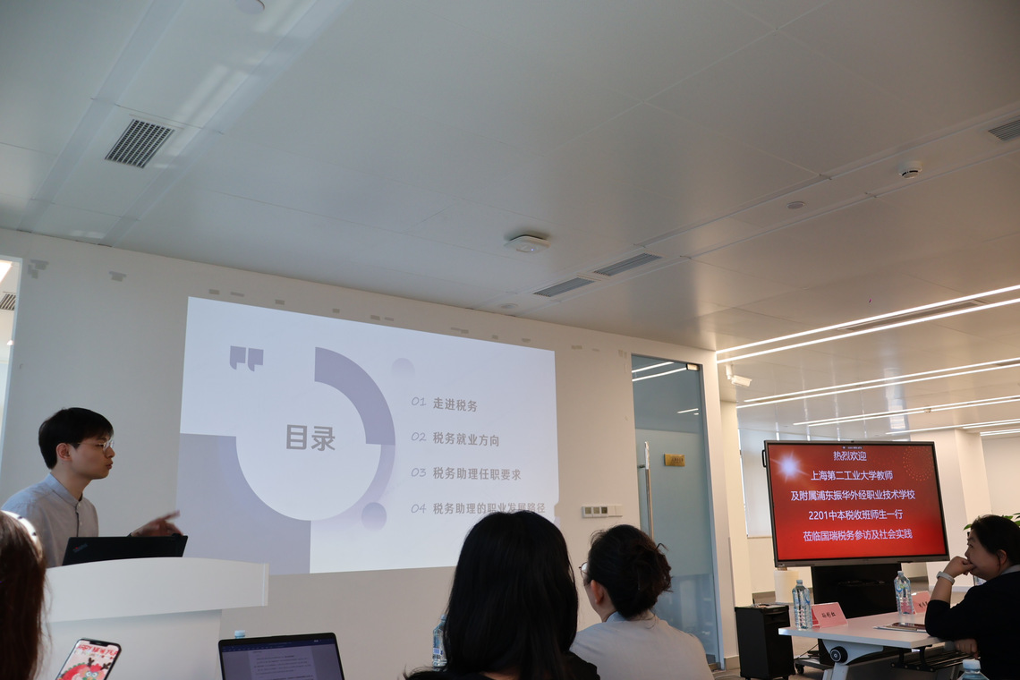 为了深化税收专业教学,加强学校与税务行业的交流合作,2024年5月24日太阳集团tcy8722税收学专业全体教师与浦东振华外经职业技术学校师生一同走进了上海国瑞税务师事务所,展开了一次别开生面的企业参观与交流活动。这次活动既为学生们提供了近距离感受税务实践的机会,也让教师们深入了解了税务行业最新发展动态。