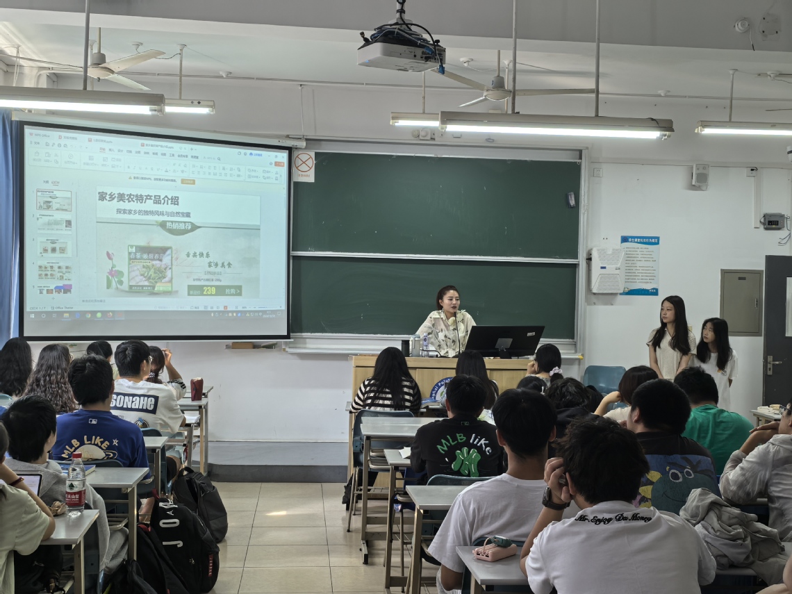 期间,李洁受邀在电子商务专业教师吴卿毅的《数字营销》课程中,特别用10分钟时间为电子商务专业的学生介绍了毕节当地的品牌与特色、商业模式。这一环节不仅为课程增添了地域文化色彩,也让学生更深入地理解了数字营销与本土品牌结合的重要性。随后,两位学生继续聆听《数字营销》课程,深化了对数字营销策略的理解与应用。