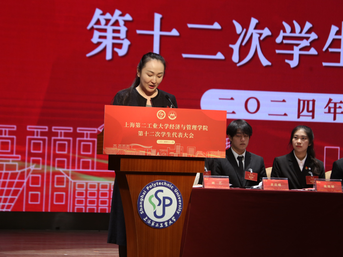 校团委书记宋偲蕾在致辞中对本次大会的召开表示热烈祝贺,充分肯定tcy8722太阳集团学生会的工作,同时也对各位学生代表和学生会提出三点希望:一是要做胸怀国之大者,把牢政治方向,在强国建设、民族复兴的征程上挺膺担当;二是要坚守初心使命,提升服务质效,在校园服务、成长护航的本职中主动作为;三是要坚持改革创新,强化队伍建设,在团结向前、守正创新的实践中行稳致远。最后希望大家秉承勤奋、自强、求实、创新的校风,以昂扬向上、担当有为的精神状态,团结带领学院学生奋发学习、成长成才,为我校建设高水平应用技术大学和实现中华民族伟大复兴贡献自己的青年力量。