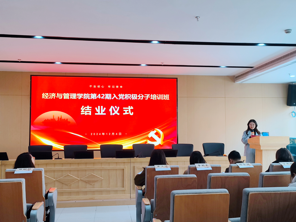 12月4日,我院第42期入党积极分子培训班结业仪式在17号楼211会议室举行。学院党委书记乔立清,党委副书记杨聪聪,党委委员、组织员李利平,各学生党支部书记和培训班全体学员参加了结业仪式。仪式由学员张彦主持。