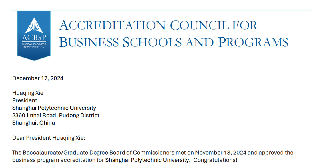 近日,我校收到ACBSP(商学院认证委员会,即Association Council for Business Schools & Programs)的官方正式通知,宣布我校的电子商务、国际商务和物流管理三个专业成功通过ACBSP国际商科专业认证。此次认证是我校首次获得的国际级专业认证,标志着学校在国际化办学进程和人才培养质量方面取得了新的重大突破,迈上了新的台阶。