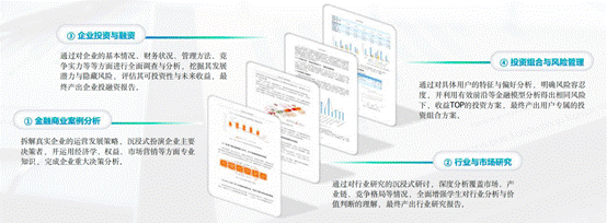 完成4个PBL项目学习,包括企业战略咨询、行业研究、企业投融资、投资组合管理与风险管理。最终形成完整的项目研究报告等成果物,这些成果将助力求职、升学、参加竞赛、甚至投入生产。