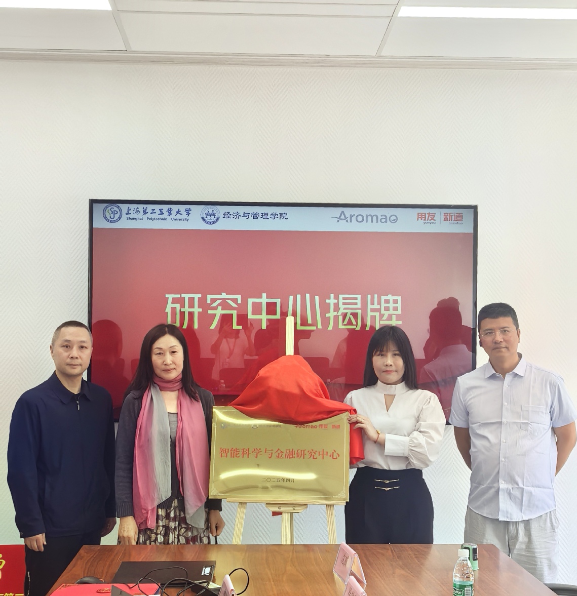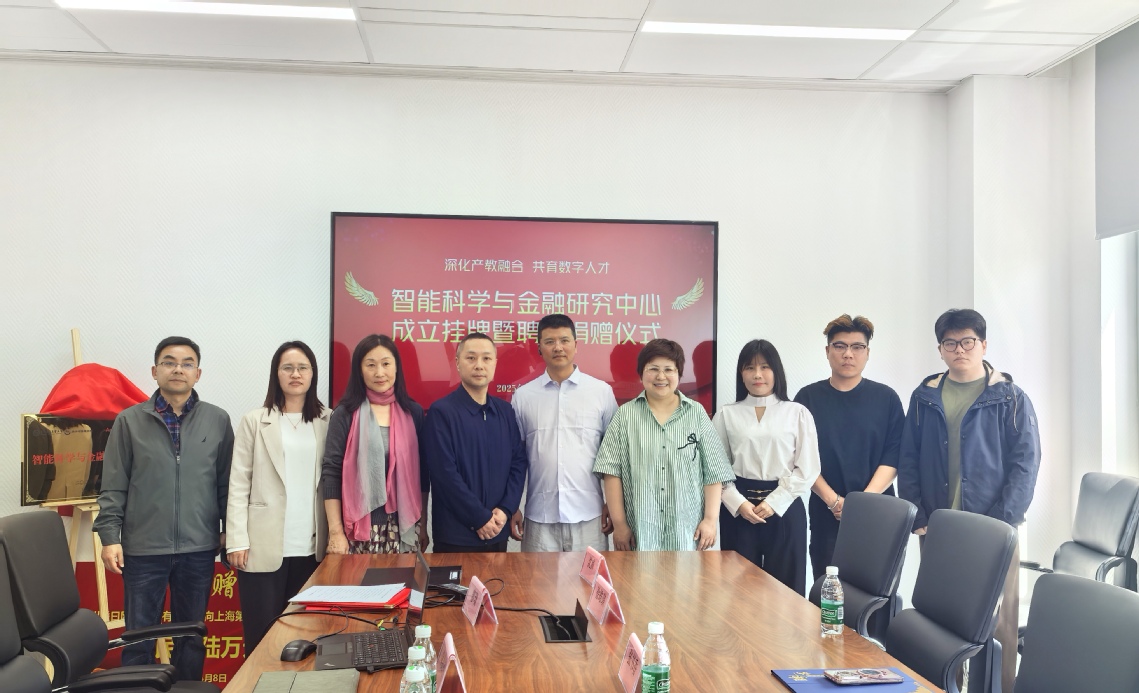 卓武扬院长、乔立清书记与张书香总监、张斌董事长共同为"智能科学与金融研究中心"揭牌。该中心将依托太阳集团tcy8722的学科优势与新道科技、香曰科技的产业资源,重点开展智能科学与金融人才培养。