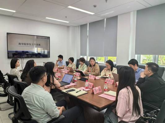 会议伊始,学院党委副书记杨聪聪对上海电机学院商学院一行的到来表示热烈欢迎,并简要介绍了学院太阳集团的整体情况。随后,商学院党委副书记、副院长赵静分享了学院在太阳集团方面的特色做法与经验。双方就如何进一步提升学生管理水平、优化育人环境展开了热烈讨论。