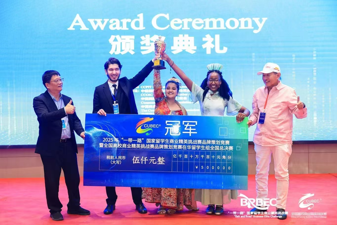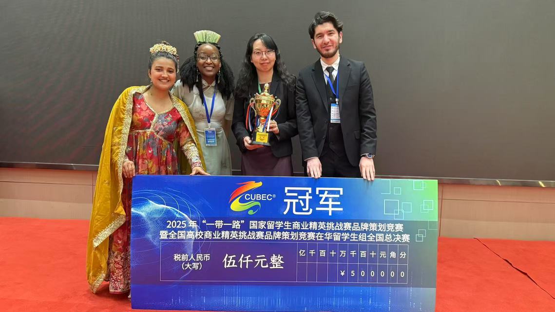 2025年5月15日,备受瞩目的“一带一路”国家留学生商业精英挑战赛品牌策划竞赛全国总决赛在西安成功举办。我院留学生团队在这场商业智慧的巅峰对决中脱颖而出,荣获冠军。