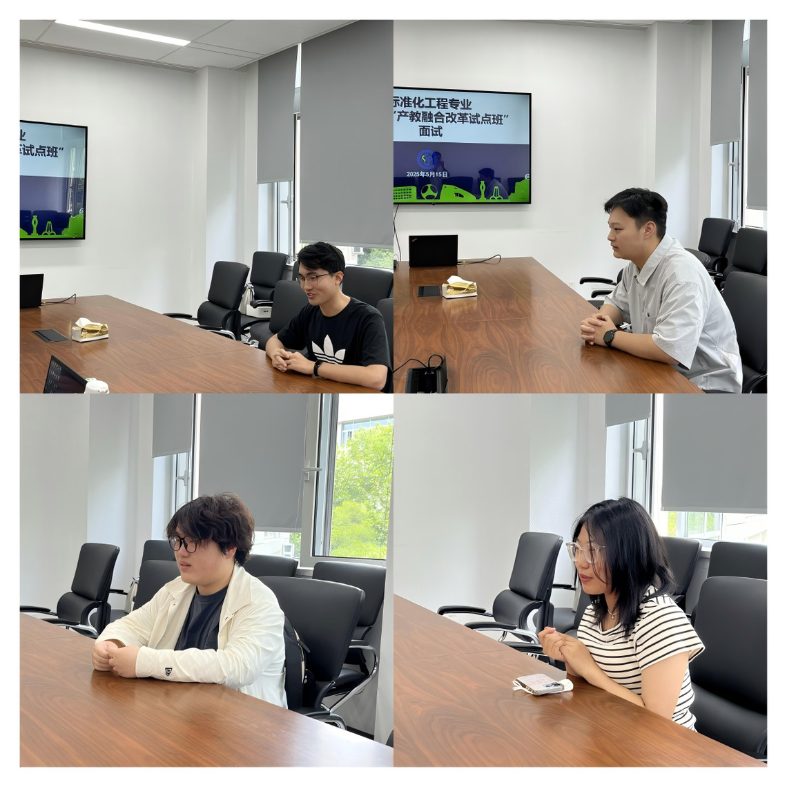 本次试点班面试遴选工作于5月15日上午开展第一轮所有报名学生面试,及5月19日第二轮待定学生二次面试,面试专家由经管产教融合改革委员会成员及标准化专业教师共同组成,旨在选拔兼具标准化理论与产业实践能力的复合型人才。此次面试内容精心设计,涵盖思想品德、专业素养、心理素质、产教融合认知等四大模块,面试过程中,评委小组从多维度对学生进行综合考察。