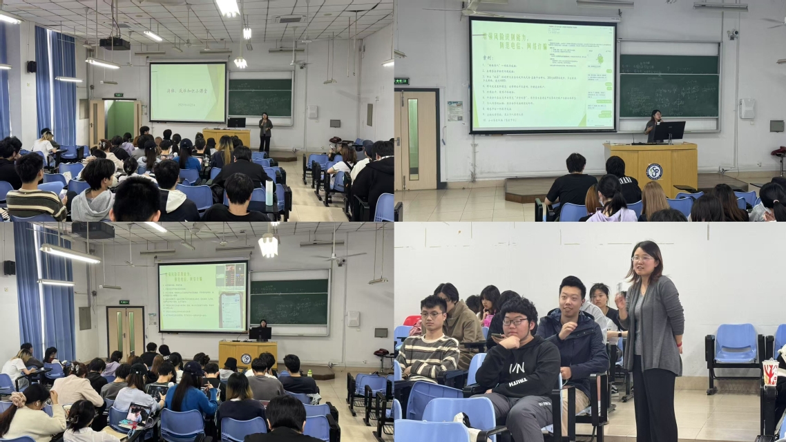浦东新区张江高校派出所驻校钱屹珽警官受邀进行防诈宣讲。他首先对诈骗和电信网络诈骗的定义进行解析,并结合实际工作中的真实案例,深入浅出地讲解了常见诈骗手法,如“刷单返利”“虚假贷款”“冒充客服”等,与此同时传授了识别和应对诈骗的技巧。他强调:“诈骗分子往往利用大学生的信任心理和金融知识盲区设局,只有提高警惕、增强防范意识,才能有效规避风险。”