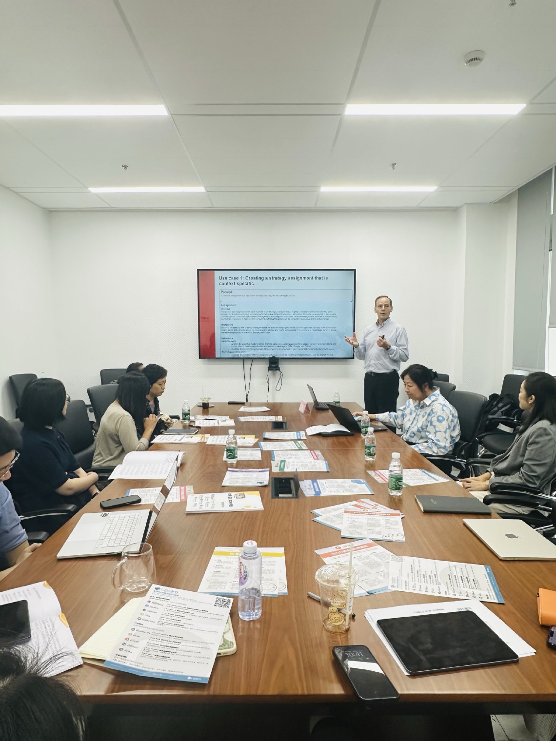Kevin McIntire先生讲解了模拟教学在塑造学生综合能力方面的核心价值,生动阐述了模拟环境如何有效提升学生的战略决策能力、全球商业视野、团队协作精神及风险管理意识。他结合丰富的国际教学案例,系统分享了从课程设计、过程引导到复盘反思的全链条教学策略,为在场教师提供了极具前瞻性与操作性的实践指南。