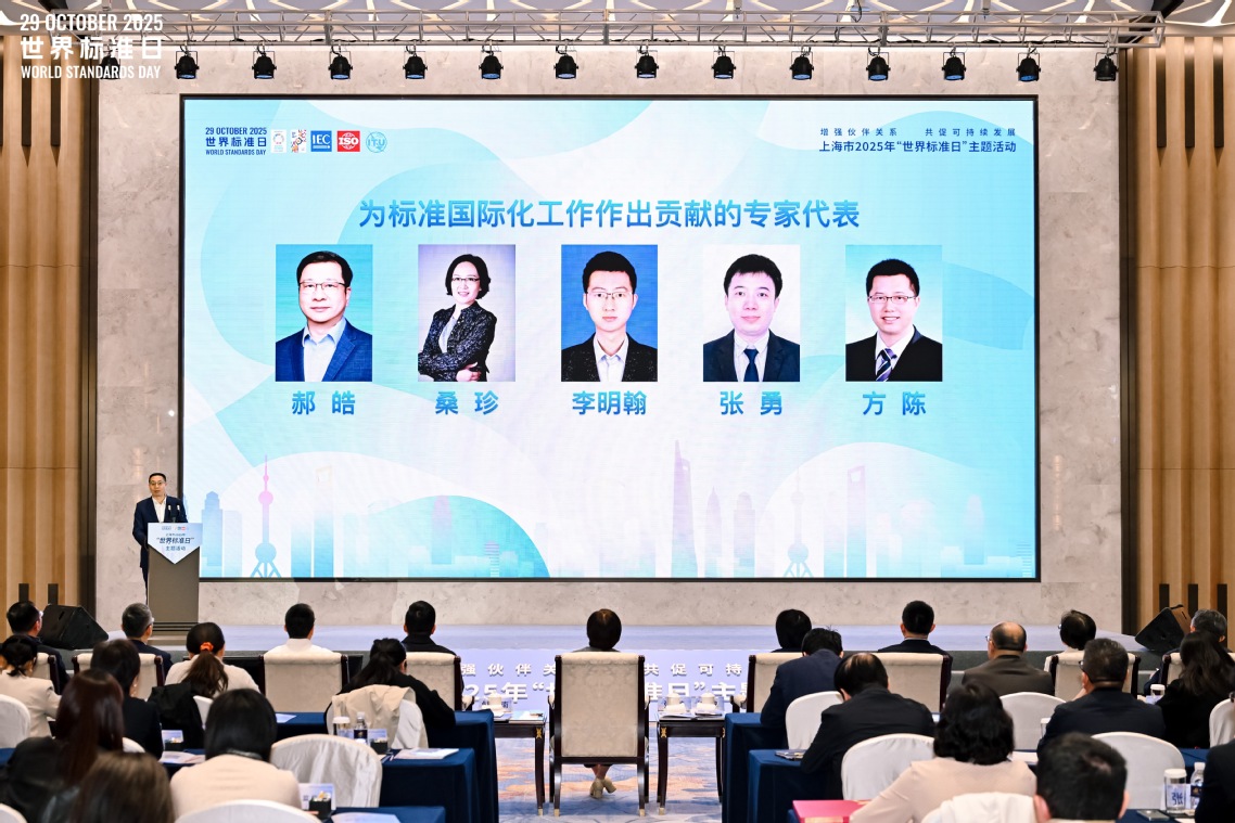 10月29日,上海市举行2025年“世界标准日”主题活动。市政府副秘书长张英,市市场监管局党组书记、局长倪俊南,浦东新区区委常委、区政府党组副书记、副区长徐徕出席活动。活动由市市场监管局党组成员、副局长王益洋主持。我院郝皓教授受邀参加活动并作为“为标准国际化工作作出贡献的专家”上台接受表彰,获此殊荣的一共有5位专家,分别来自于动力电池回收、中医药、量子科学、生物制造、低空飞行器等领域。