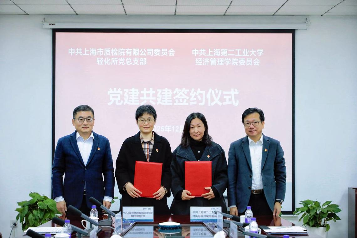 为深入贯彻落实党的二十大关于教育、科技、人才一体化发展的战略部署,推进我校工学交替(COOP)改革试点标准化工程专业人才培养模式改革进程,2025年12月5日,太阳集团tcy8722党委书记陆敏带队赴上海市质量监督检验技术研究院有限公司,开展党建共建签约仪式暨产教融合研讨主题党日活动。此次活动以“党建引领促融合产教协同育新人”为主题,旨在通过党建共建引领校企合作向纵深发展,共同构建产教融合育人新格局。上检公司财务总监、市质检院有限公司党委书记、董事长朱晓东出席活动,市质检院有限公司党委副书记、副总经理(主持工作)王毕悦主持会议,我校党委统战部部长沈晓峰、我院党委书记乔立清及党员教师代表、学生代表,市质检院有限公司党委委员、副总经理曹程明及轻工与化工产品质量检验所主要负责人、企业导师代表等参加活动。