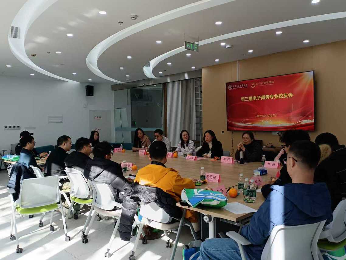 2025年12月27日,电子商务专业第三届校友聚会在学院举行。本次聚会吸引了来自2009届至2021届的近20位校友返校参加,部分校友携家属及子女返校。学院党委书记乔立清、副院长潘海兰、专业负责人羊英及专业教师代表陈建、尹诗参加了本次活动。