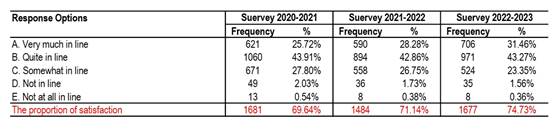 Student Satisfaction Survey in 2020-2021,2021-2022, 2022-2023